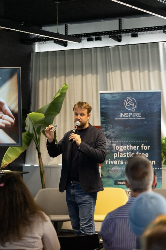 The event kicked off with Panos Petridis (alchemia-nova), who introduced the mission and work of alchemia-nova in advancing circular economy solutions, and Gert Everaert (Flanders Marine Institute – VLIZ), who introduced the INSPIRE Europe Project and outlined the project’s goals and its role in bringing together stakeholders across Europe to address plastic pollution in river ecosystems. Daniel Steinitz (bündnis mikroplastikfrei) emphasized the environmental risks of single-use plastic packaging and the urgent need for biodegradable and packaging-free alternatives.