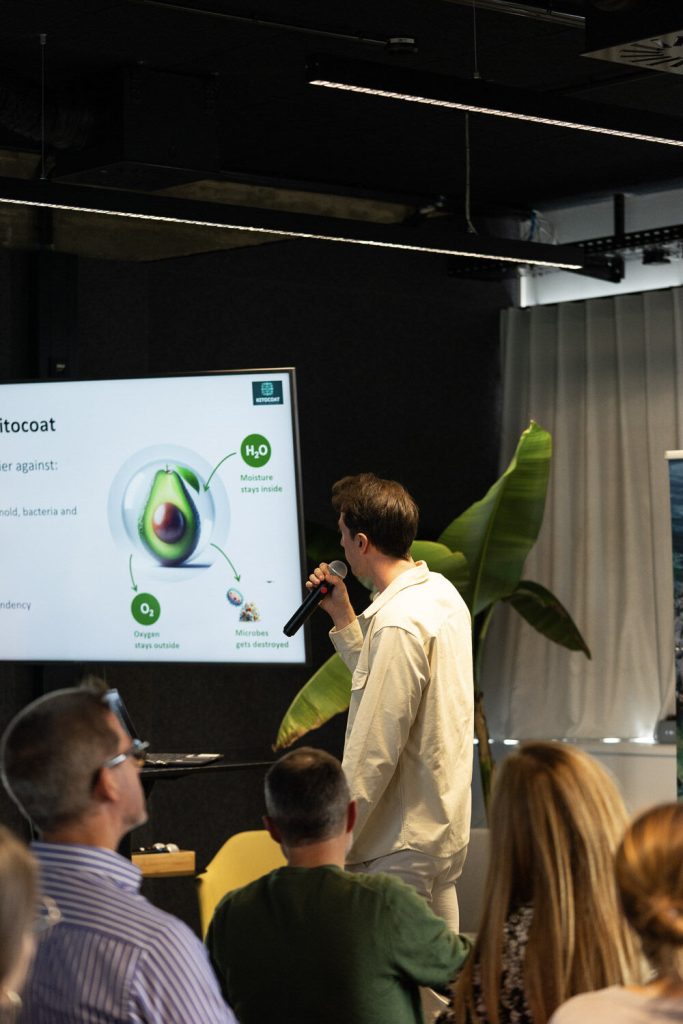 Michael Neuman (KITOCOAT) – presented a chitosan-based nanocoating solution to extend the shelf life of fruits and vegetables (left photo) and Martin Leban (123Zero) – showcased their organic cosmetic products in powder form and plastic-free packaging for the hospitality and events sector (right photo)