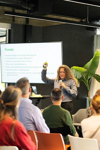 Johann Zimmermann (NaKu) reflected on his company’s pioneering journey in bio-based plastics. He identified price as the main barrier preventing customers from switching to compostable alternatives—if costs were equal, demand would soar. Zimmermann advocated for a system where producers of microplastic pollution bear responsibility for remediation costs, making sustainable solutions more competitive. He also called for clearer regulations and standardized labeling to simplify the validation of compostable materials.