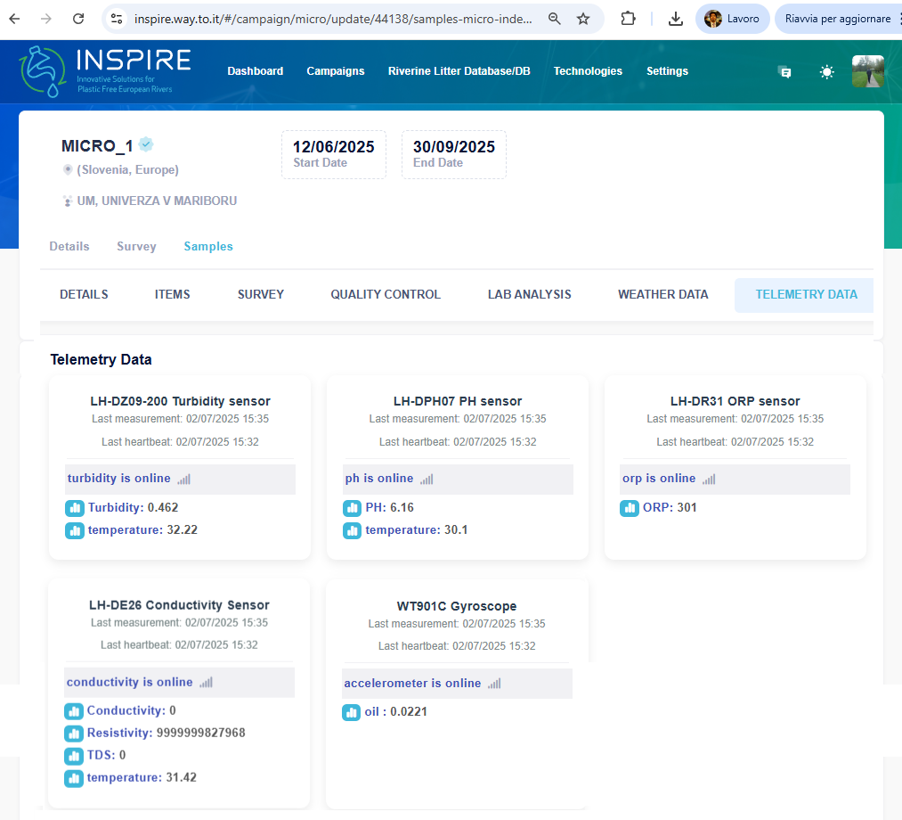 The system integrates real-time telemetry from deployed technologies, collecting measurements such as turbidity, pH, conductivity, and chemical oxygen demand. This enables continuous performance monitoring and data-driven evaluation of innovative collection and prevention tools.